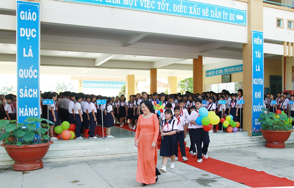 Dịp này, trường cũng đã tổ chức lễ khai giảng năm học mới 2014 – 2015. Đây là ngôi trường khai giảng đầu tiên trong toàn huyện. Lễ khai giảng đã diễn ra với các nghi thức truyền thống như đọc thư chủ tịch nước gởi ngành giáo dục nhân ngày khai trường, báo cáo hoạt động năm học qua và phương hướng hoạt động năm học mới. Nhà trường còn tổ chức hoạt động văn nghệ chào mừng ngày khai trường qua đó tạo không khí vui tươi cho các em học sinh đầu năm học mới.